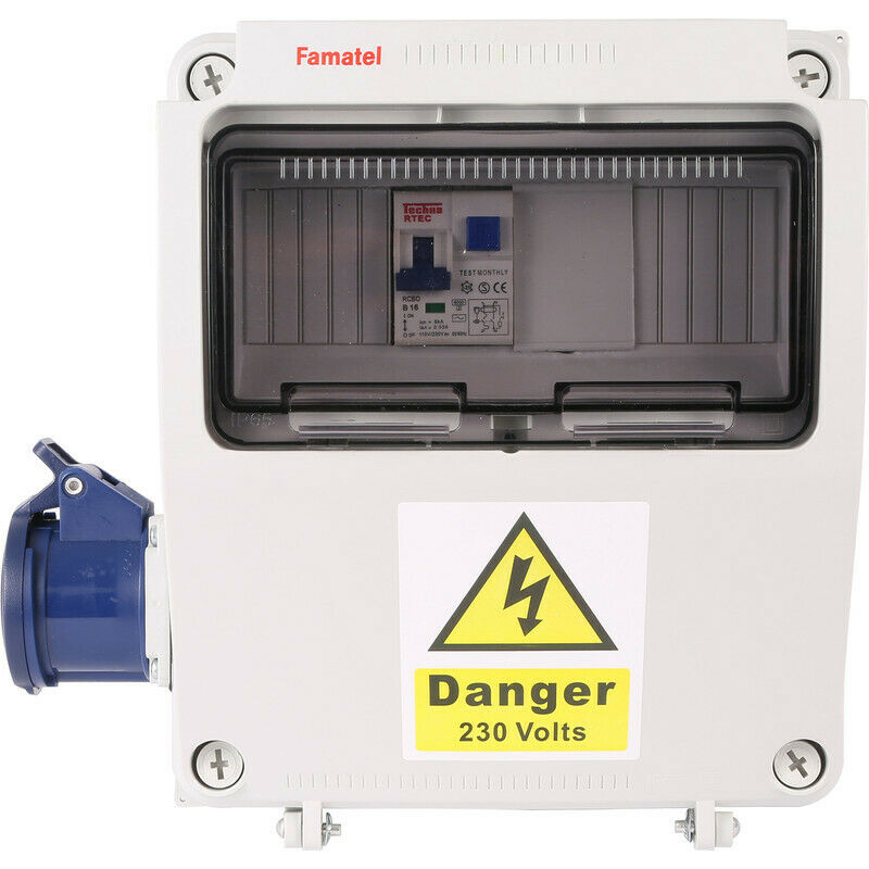 Famatel 17th edition caravan hook up 1 x 16a 2p+e socket 1 x 16a rcbo dp 30ma