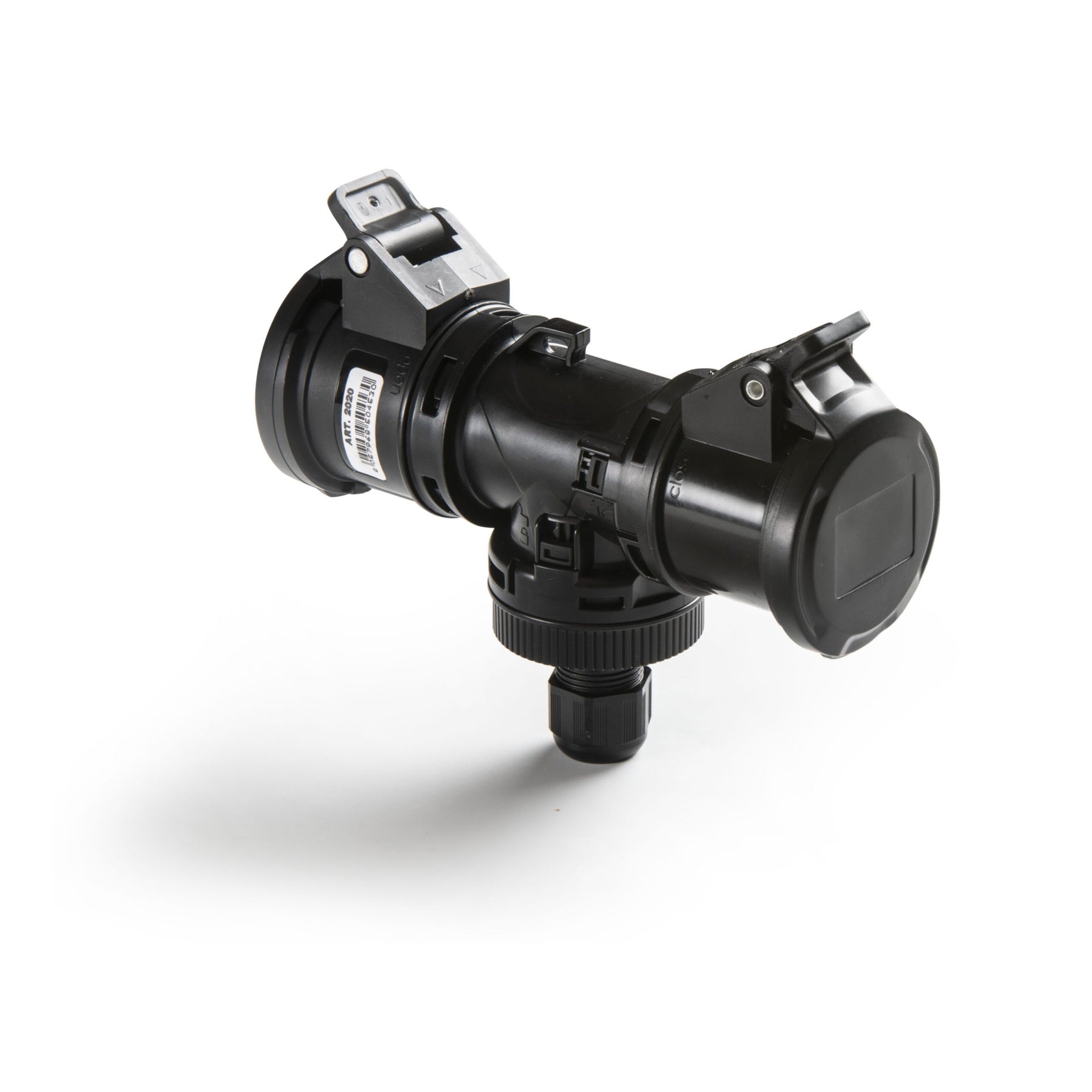 Famatel t-power 2 x 16a 2p+e 6h 240v coupler c/w 1 gland ip65 black
