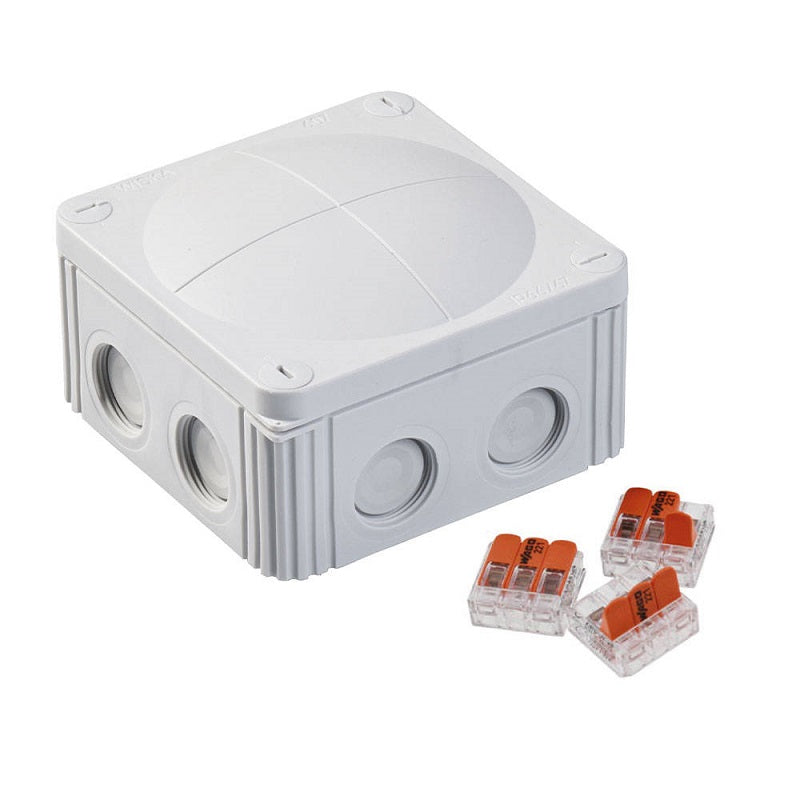 Wiska combi 407 lg polypropylene 95 x 95 x 60mm enclosure grey ip66 3x3 pole wago connectors