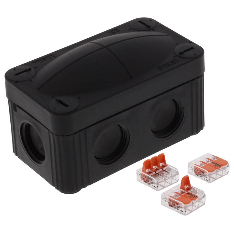 Wiska Combi 206 BK Polypropylene 85 x 49 x 51mm Enclosure Black IP66 3x3 Pole Wago Connectors - 10109900 Part No ...