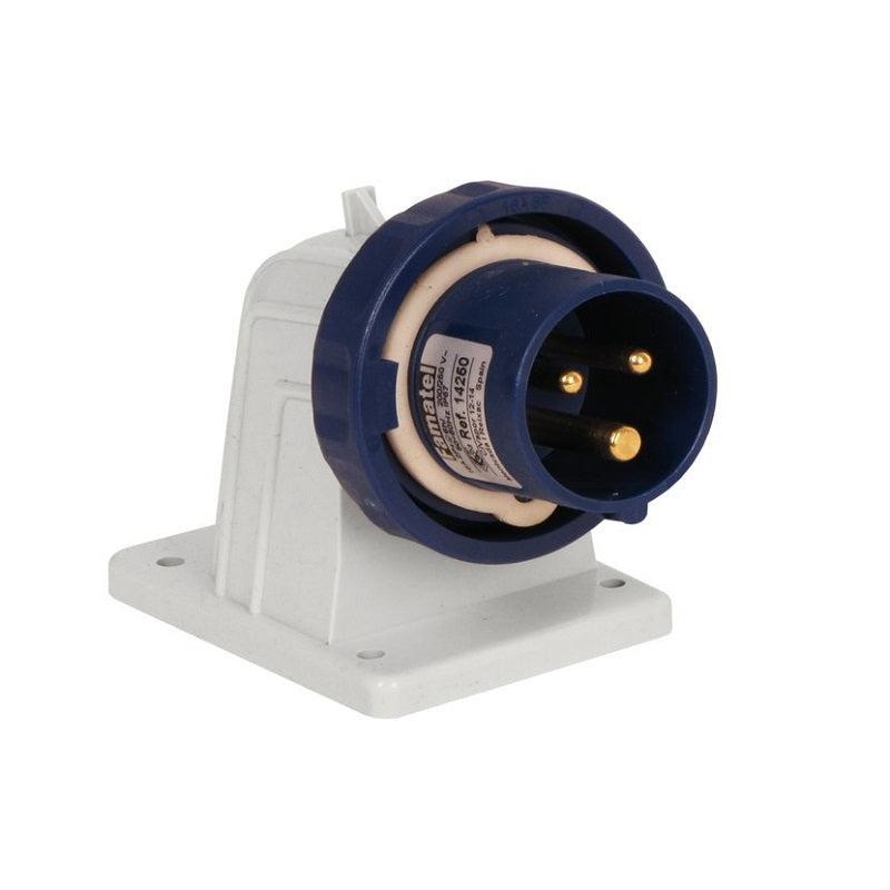Famatel 16A 2P+E 6h 240V Angled Surface Appliance Inlet IP67 Blue - 14250 Part No Description 14250 16A 2P+E 6h...