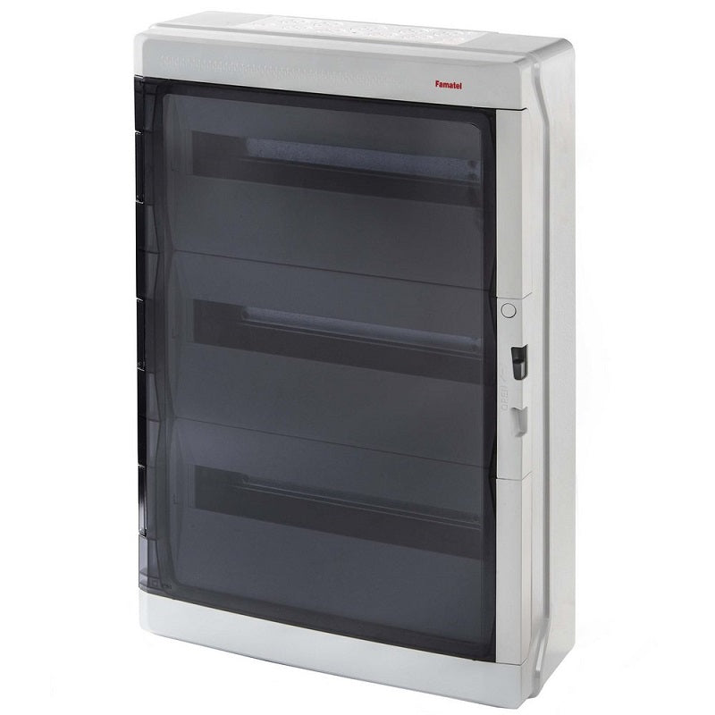 Famatel Acqua Plus IP65 Weatherproof Consumer Unit Enclosure 54 Modules (3x18) - 39054 Part No Description 39054 Acqua Plus IP65...